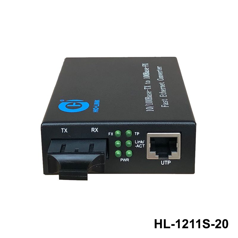 Bộ chuyển đổi phương tiện ether-net dòng Ho-Link HL-1211S-20 có thể chuyển đổi lẫn nhau các tín hiệu điện của cặp xoắn 10Base-T và 100Base – TX với tín hiệu quang của 100Base-FX. Nó mở rộng khoảng cách truyền dẫn mạng từ 2km đến 20km thông qua cáp quang.