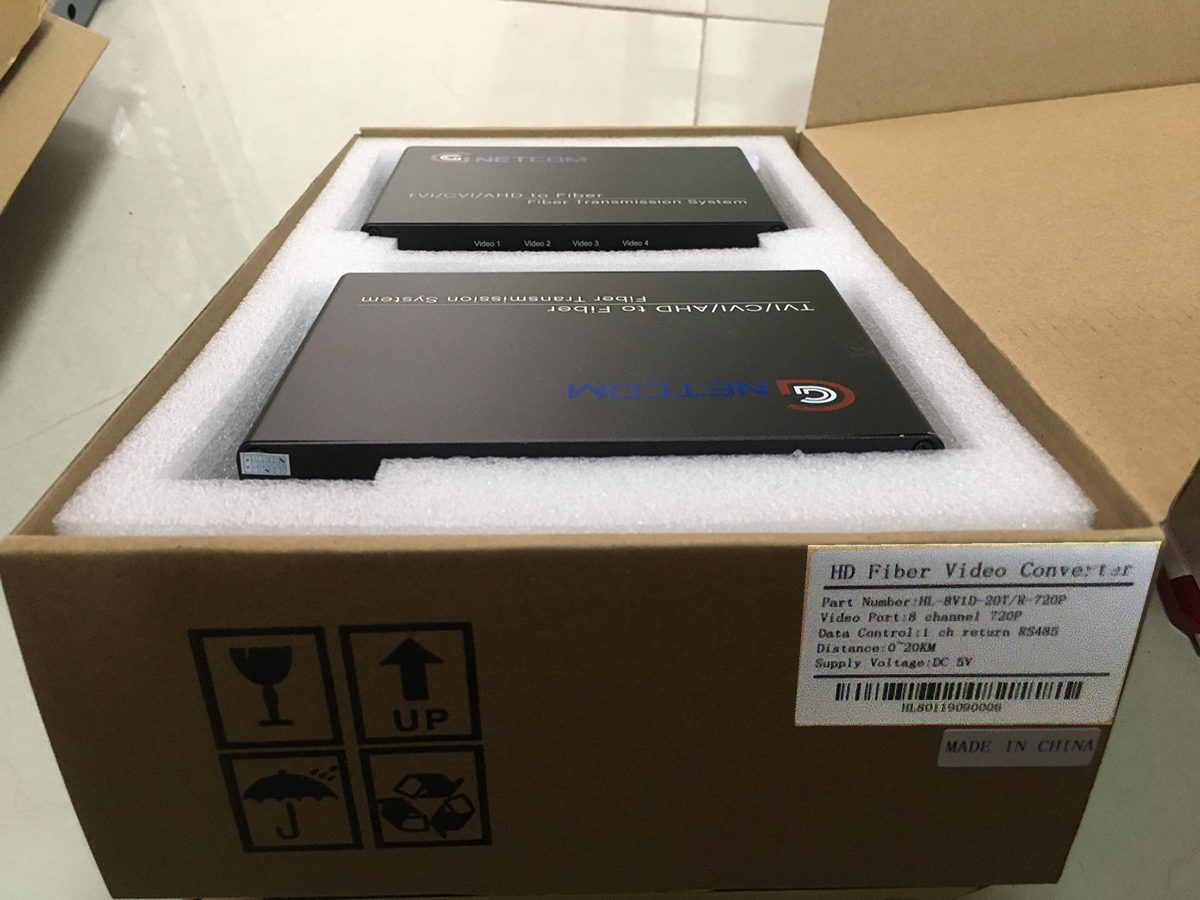 ✨Bộ chuyển đổi video sang quang 8 kênh GNETCOM HL-8V1D-20T/R-720P (2 thiết bị,2 adapter,Cổng điều khiền) - Hàng Chính Hãng