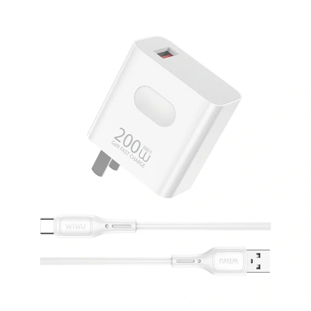 ✨Bộ cóc củ dây sạc nhanh 200W USB A QC 3.0 kèm dây Type C PPS chống cháy hiệu WIWU GAN ESSEN Fast Charger cho iPhone 6 15 14 13 12 11 ProMax cho iPad Pro Air 10.2 9.7 10.5 11 12.9 13 inch S24 S25 cho Macbook cho Laptop Find Flip Fold - Hàng nhập khẩu
