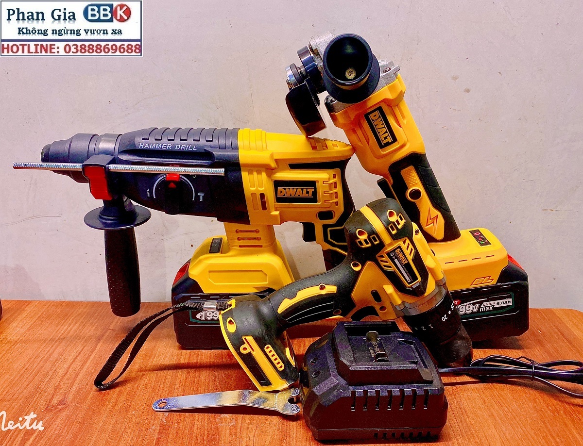 ✨Bộ Combo 3 Trong 1 Gồm Máy Khoan Đục Bê Tông, Máy Mài Và Máy Khoan Pin Dùng Pin 199V 15 Cell, Máy Khoan Siêu Khỏe, Động Cơ Không Chổi Than - Bảo Hành 1 Năm