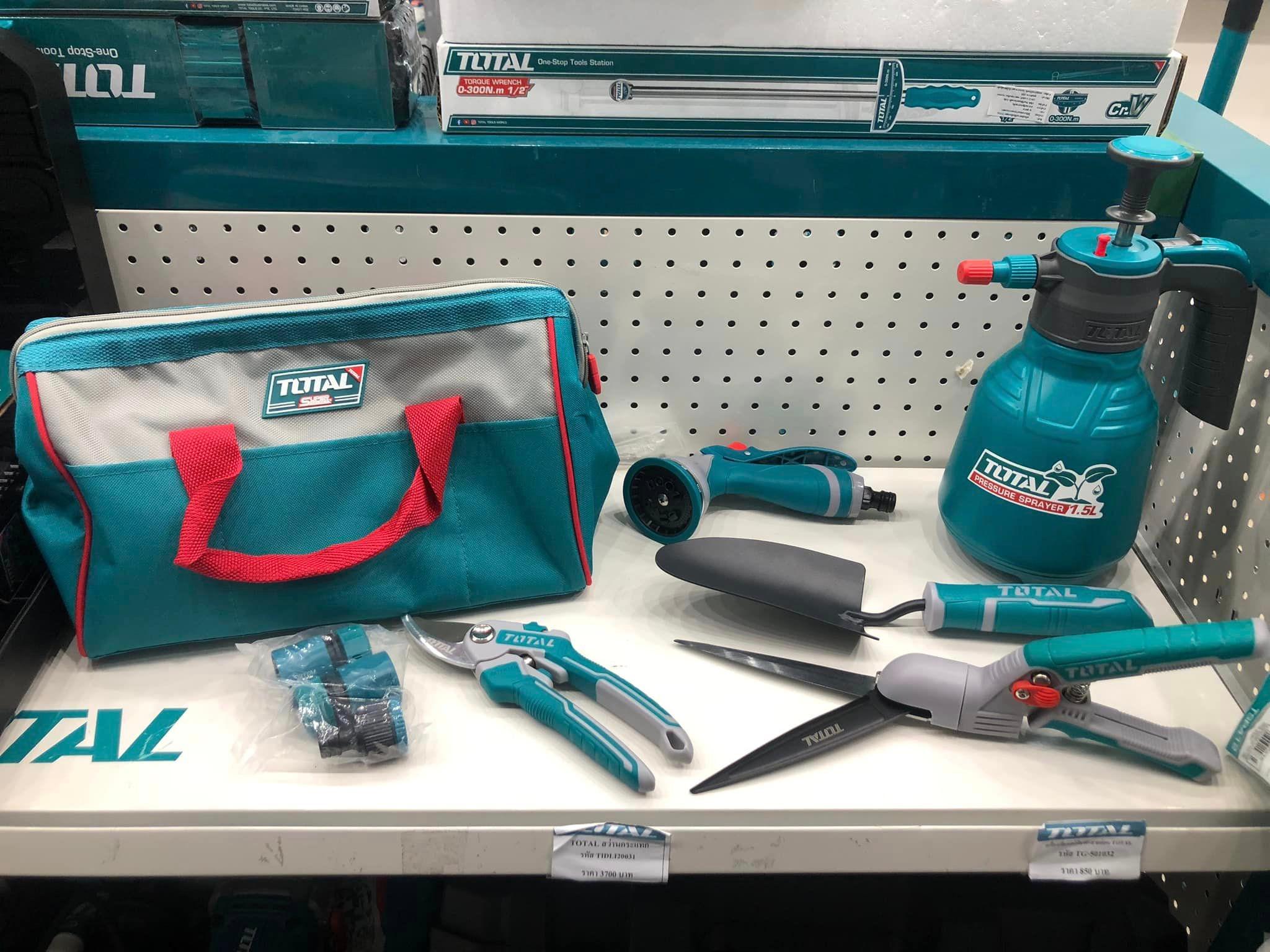Thương hiệu đồ nghề và máy móc Total ngày càng khẳng định vị thế của mình trên thị trường, cạnh tranh thị phần với những nhãn hiệu có danh tiếng xưa giờ luôn. Total sẽ chứng minh hàng rẻ nhưng có chất lượng tốt là có thật! Total tools - Không cần bỏ số tiền lớn nhưng vẫn có cho mình những đồ nghề chất lượng. Từ những món đồ nghề đơn giản như búa, tuốc nơ vít, lục giác, cờ lê mỏ lết… được sử dụng nhiều trong gia đình cho đến những máy móc dùng điện và pin Lithium-Ion như máy khoan, máy đục bê tông, máy cưa lọng, máy cắt sắt, máy mài góc… công suất mạnh, hay được sử dụng trong nhiều ngàng công nghiệp nặng. Tất cả sản phẩm do Total sản xuất đếu khá là chất lượng và có mức giá rẻ, không như các ông lớn khác là Makita, Stanley… sản phẩm tuy tốt nhưng có giá thánh khá là đắt! Bạn thắc mắc vì sao mà công cụ - dụng cụ Total có giá rẻ ư?! Vì họ không tốn bất cứ tiền quảng cáo, quảng bá thương hiệu nào cả, từ đó mà giá thành sản phẩm rẻ! Thông số kĩ thuật -Mã sản phẩm: TOS23048 -Nhà sản xuất: Total -Bộ combo 7 công cụ làm vườn gồm: -1 Kéo cắt tỉa 220mm THT0601 -1 xẻng xúc đất làm vườn 340mm THFTT858 -1 Kéo cắt cỏ 340mm THTGS60340 -1 Bình phun 1.5L THSPP201502 -1 Vòi phun THZATN1101. 1 Bộ 3 khớp nối THWS030301 -1 Túi đựng công cụ 13 inch THT261325