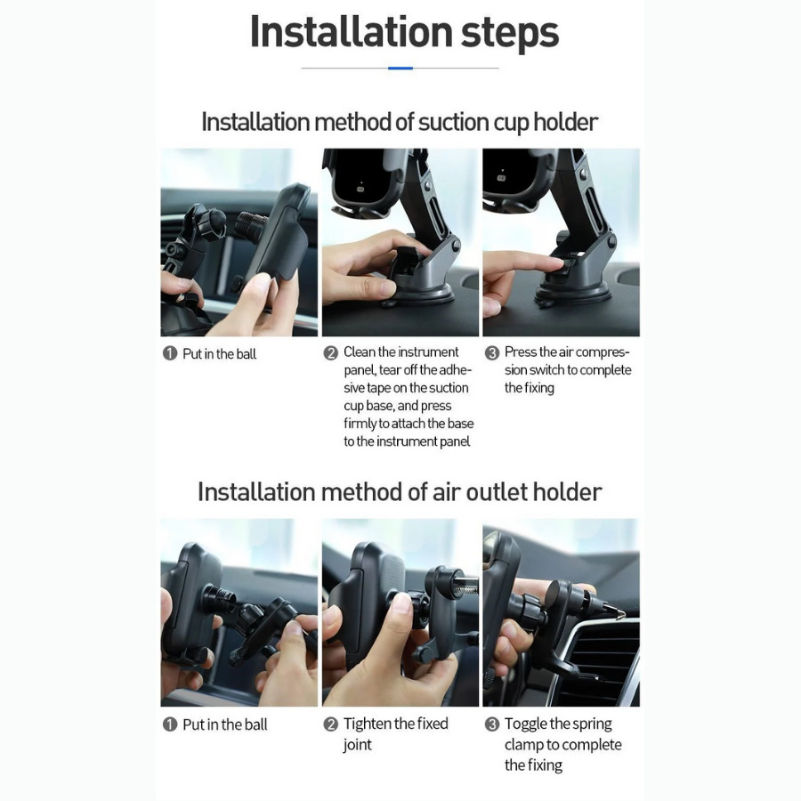 - Giới thiệu Bộ đế giữ điện thoại dùng trên xe hơi Baseus Light Electric Holder Wireless Charger 15W Bộ đế giữ điện thoại dùng cho xe hơi Baseus Light Electric Holder, được tích hợp tính năng sạc nhanh không dây công suất cao 15W và khả năng tự động nhận diện thiết bị bằng cảm biến (Sensor) . Bộ đế giữ điện thoại tích hợp sạc nhanh không dây Baseus Light Electric Holder được thiết kế thông minh, có thể gắn trên táp lô hoặc cửa gió thật sự là một phụ kiện đẳng cấp và hữu ích dành cho chiếc xe hơi của bạn