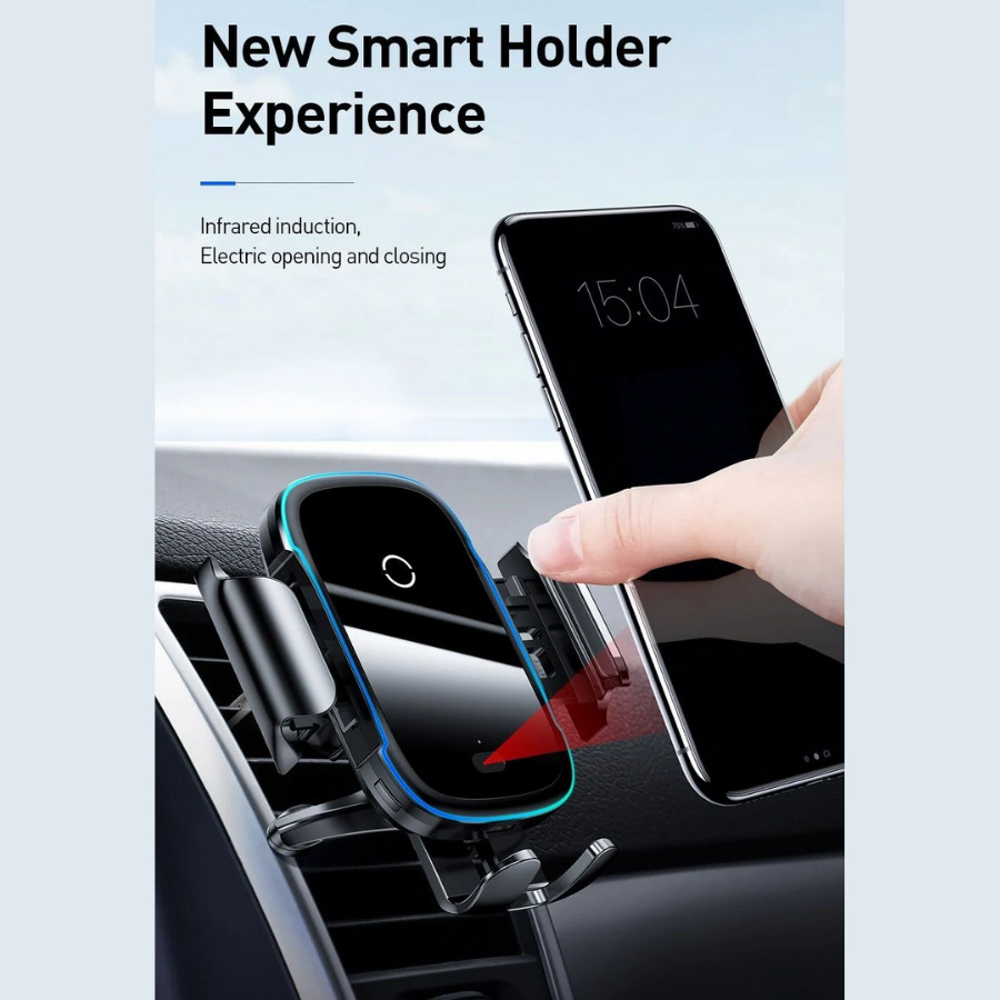 Bộ đế giữ điện thoại dùng trên xe hơi Baseus Light Electric Holder Wireless Charger 15W (tích hợp sạc nhanh không dây 15W và cảm biến tự động nhận diện thiết bị) LV637-BK * Giới