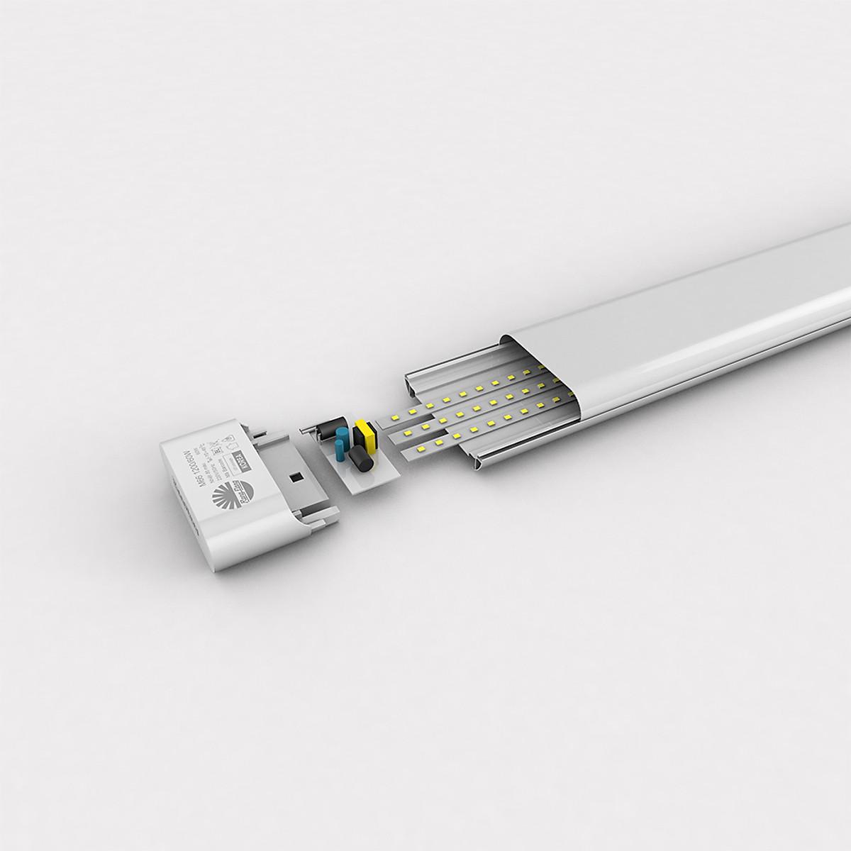 Mua tại TiktokCông suất: 60W Dải điện áp hoạt động: (150 - 250)V/50Hz Nhiệt độ màu: 3000K/4000K/6500K Quang thông: 6000/6600/6600 lm Hiệu suất sáng: 100/110/110 lm/W Chỉ số hoàn màu CRI: 80 Tuổi thọ: 30.000 giờ Kích thước (DxRxC): (1200x86x30)mm :
