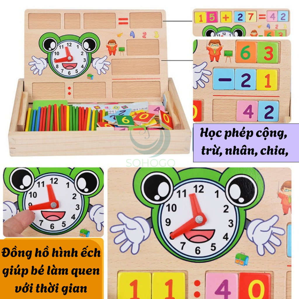 ✨Bộ Đồ Chơi Học Toán Thông Minh Kèm Đồng Hồ Cho Bé- Hộp Đồ Chơi Gỗ Giáo Dục – Học Số, Phép Tính và Thời Gian- Bộ Lắp Ghép Số Toán Học Kèm Đồng Hồ Gỗ Cho Trẻ- Bộ Học Toán Tư Duy Montessori Cho Bé- Bộ Đồ Chơi Gỗ Toán Học & Nhận Biết Giờ Giấc