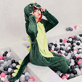 Bộ Đồ Khủng Long Xanh Áo Liền Thân Hình Thú Cho Người Lớn Chất Nhung Mềm Mại Dễ Thương