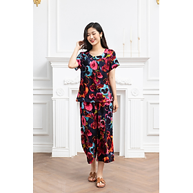Bộ mặc nhà trung niên lanh (tole) Vicci BGS.06, áo cộc tay phối quần ống sớ lưng thun in hoạ tiết với thiết kế thanh lịch mang đến cho phái đẹp vẻ ngoài duyên dáng, đằm thắm. Form trang phục suông tạo cảm giác thoải mái khi làm việc, hoạt động ở nhà. Kiểu áo tay ngắn và quần dài phối họa tiết mới lạ, bắt mắt trên nền màu của trang phục. Sản phẩm được may từ chất vải lanh nhung mềm mịn, thoáng mát phù hợp mặc trong mùa xuân hè.