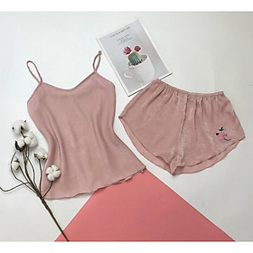 Đồ bộ mặc phi lụa cao cấp WANNABE BSS38 bộ sọt 2 dây cúp 2 lớp tạo độ phồng cúp ngực nữ tính trẻ trung năng động Đồ bộ mặc nhà phi lụa cao cấp