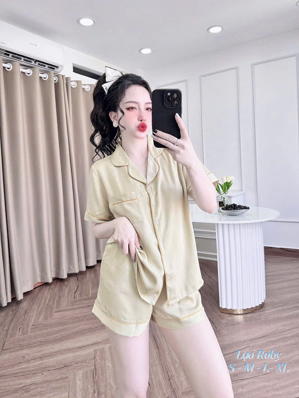 - Chất liệu : lụa phi bóng - Set gồm quần short trên đùi và 1 áo tay ngắn - Dáng mặc rộng thoải mái - Đồ bộ nữ tính, đẹp mắt, phù hợp với