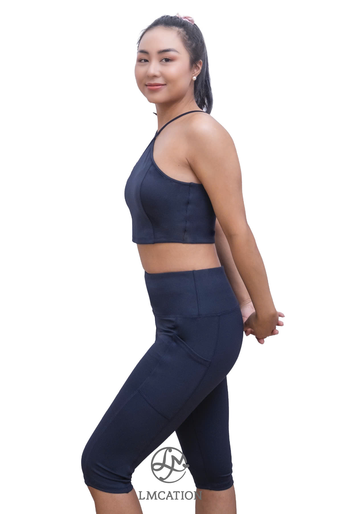Bộ đồ thể thao LMcation - Áo ngực thể thao cổ yếm Sophie - Sọc đủ màu & Quần lửng thể thao trên gối túi 2 bên - Xanh đen được may đo tỉ mỉ bởi cộng đồng phụ nữ LMcation, để tôn dáng và che khuyết điểm cho phụ nữ với bất kỳ hình dáng hay màu da nào. Mỗi sản phẩm được cắt may bởi một trong những đối tác nữ của chúng tôi ở Việt Nam, chúng tôi tạo cơ hội cho các cộng đồng phụ nữ và đào tạo tay nghề cho họ để họ có tương lai tốt đẹp và thu nhập bền vững hơn. Sản phẩm được đóng gói bằng túi vải có thể tái sử dụng là thành phẩm từ bàn tay của cộng đồng người khuyết tật.