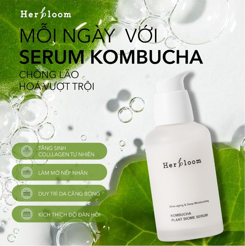 - Tỷ lệ hấp thụ hoạt chất tăng lên nhờ áp dụng công nghệ Liposome cho chiết xuất trà KOMBUCHA và axit hyaluronic để cung cấp hiệu quả các thành phần hoạt tính có trong nước hoa hồng. Serum Trẻ Hóa Làn Da Làm Mờ Thâm Nám Kombucha Plant Biome Serum HERBLOOM 50ml. Công dụng: