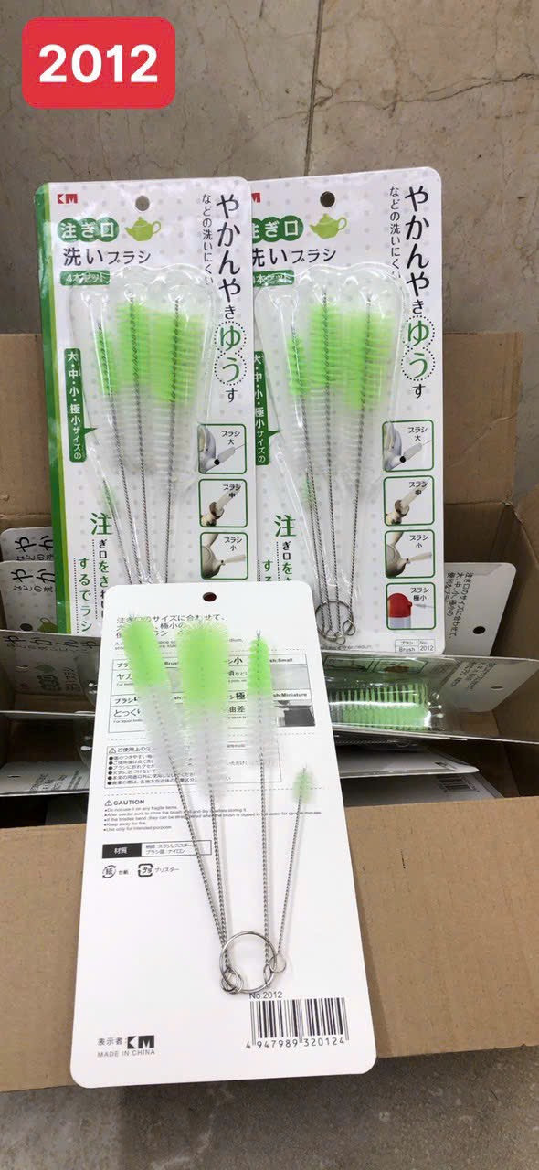 Mua tại TiktokBộ dụng cụ cọ rửa bình nước KM-2012 hàng Nhật Bộ sản phẩm 4 chiếc cọ gồm :