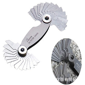 - Kích thước đo từng là : 0.25, 0.3, 0.35, 0.4, 0.45, 0.5, 0.55, 0.6, 0.65, 0.7, 0.75, 0.8, 0.85, 0.9, 1.0, 1.1, 1.2, 1.25, 1.3, 1.4, 1.5, 1.6, 1.7, 1.75, 1.8, 1.9, 2.0, 2.25mm Thông tin dưỡng đo ren 26 lá Hệ Inch shinwa 73794