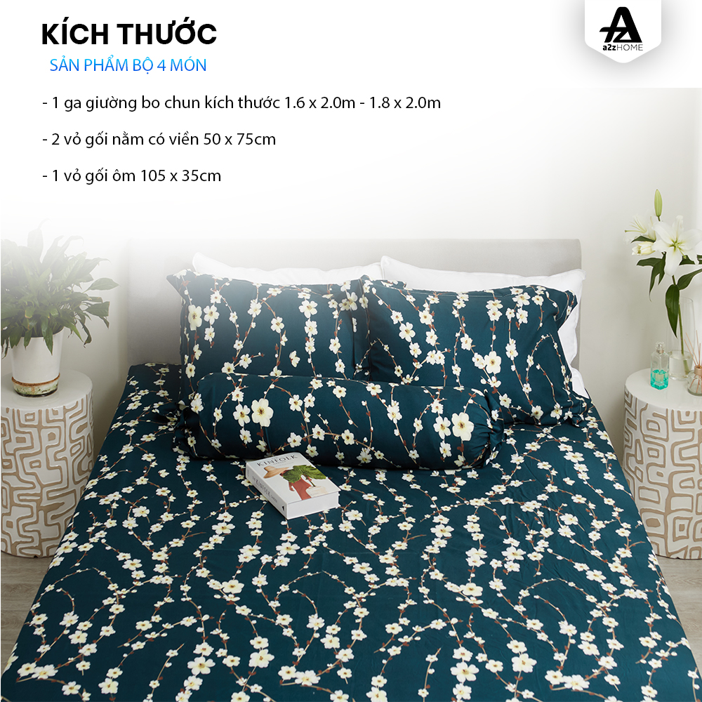 - Bộ ga giường cao cấp 4 món bao gồm: 1 drap giường + 2 vỏ gối nằm + 1 vỏ gối ôm.