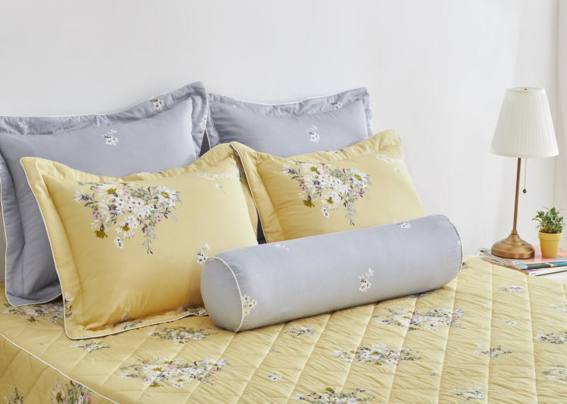 Những cụm hoa cúc dại được vẽ tinh tế tạo nên điểm nhấn đặc biệt trên nền vải tông vàng nhẹ nhàng. Vẫn là một không gian sáng sủa, tươi mát, nhưng bộ chăn ga EPM21068 mang đến một vẻ trang nhã vô cùng.