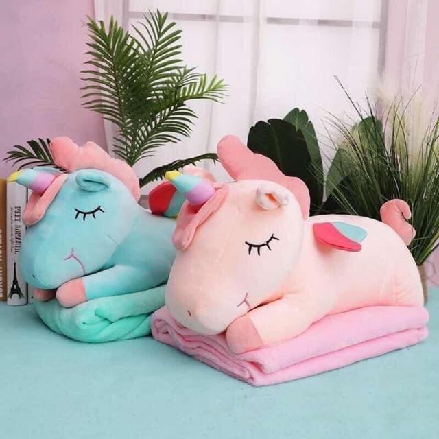✨Bộ Gối Chăn Hình Ngựa Kì Lân Pony Có Cánh 3 Trong 1 Dễ Thương