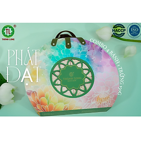 Bộ hộp Bánh trung thu Phát Đạt - Thành Long gồm 4 bánh: Nhân gà quay lạp xưởng (150g) Nhân đậu xanh hạt dưa (150g) Nhân hạt sen (150g) Nhân dừa sầu riêng (150g) Hạn