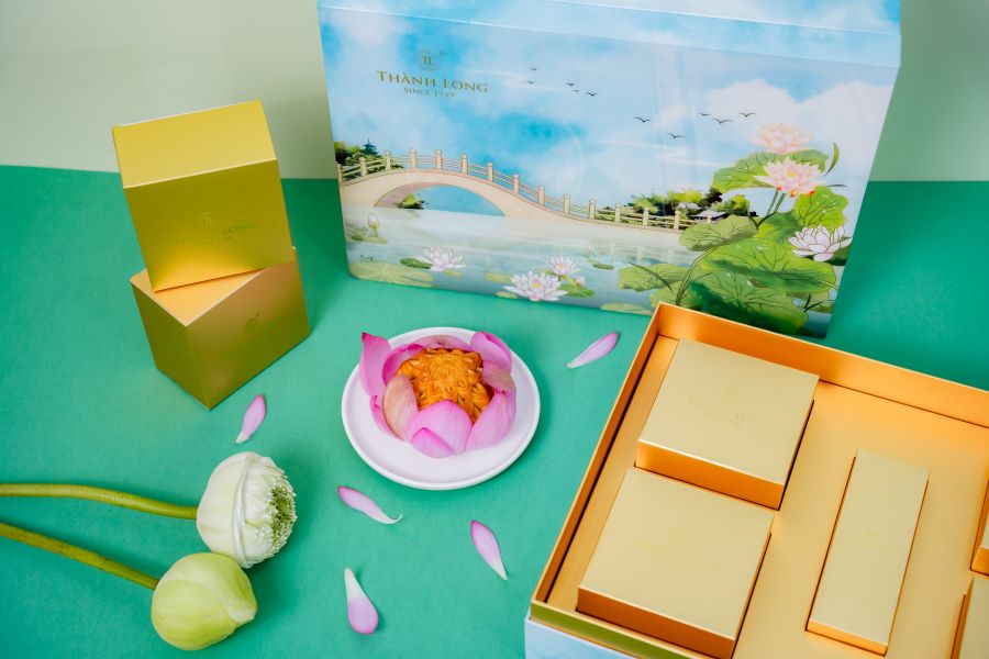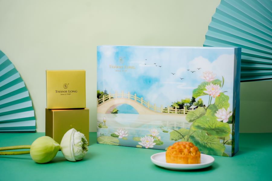 Bộ hộp Bánh trung thu Trường Phúc - Thành Long gồm 4 bánh: Nhân thập cẩm vi cá hải sản ( 220g ) Nhân hạt sen macca ( 220g ) Nhân trà xanh hạnh nhân