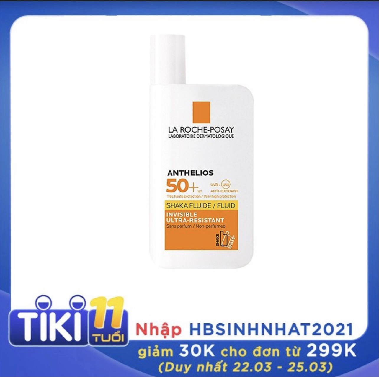 Thông tin sản phẩm: Kem chống nắng dạng sữa lỏng nhẹ không nhờn rít La Roche-Posay Anthelios Shaka Fluid SPF 50+ 50ml là dòng sản phẩm có khả năng chống nắng phổ rộng, bảo vệ da