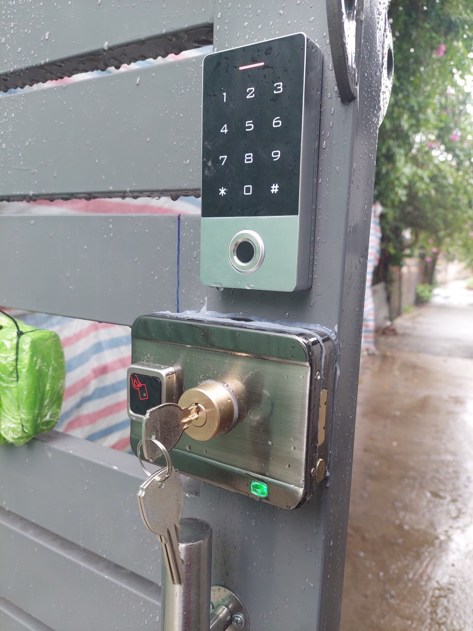 - Khóa chịu được mọi thời tiết khắc nghiệt Bộ khóa cổng điện tử thông minh SG-302P BAO GỒM: