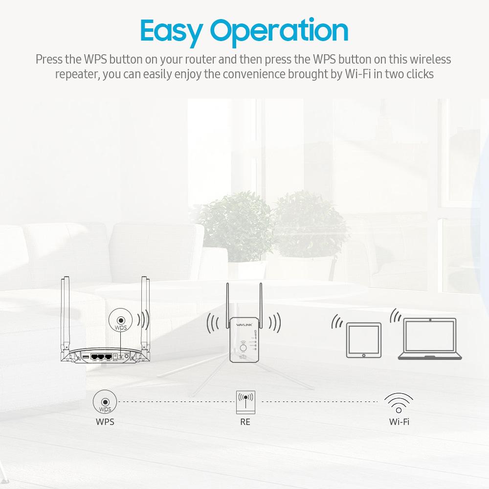 Easy operation, just press the WPS button on your router and then press the WPS button on this wireless repeater, you can easily enjoy the convenience brought by Wi-Fi in two clicks.