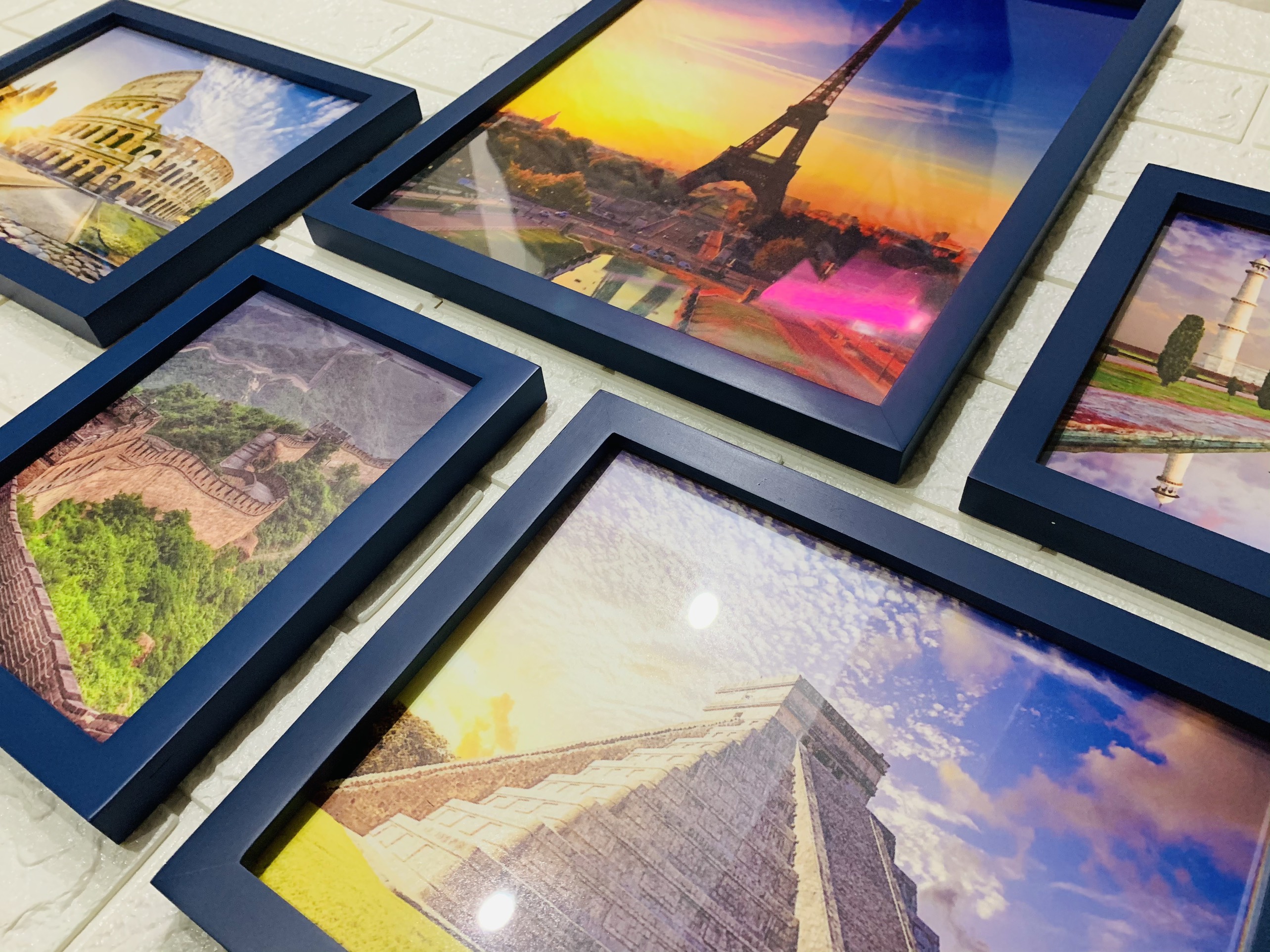 ✨Bộ khung ảnh gỗ thông xanh Navy kì quan thế giới 9 BINBIN KAT143/Tặng đinh 3 chân