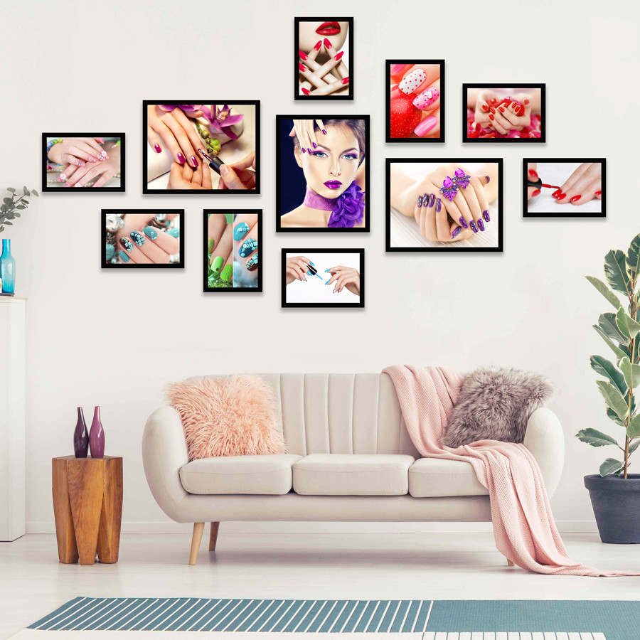 ✨Bộ Khung Ảnh Treo Tường Trang Trí Tiệm Nail, Sơn Móng Tay, Trang Điểm, Salon Tóc Hiện Đại Tặng Kèm bộ ảnh như hình mẫu, đinh treo tranh và sơ đồ treo PGC261