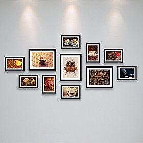 Kích Thước Bộ Khung gồm: 3 khung 20x25cm, 8 khung 13x18cm (Tổng kích thước sau khi treo khoảng 145x70cm)