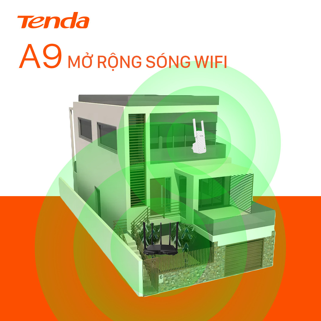Tenda A9 là sự lựa chọn hoàn hảo để cung cấp tín hiệu mạnh mẽ ở những khu vực sóng yếu nhưng khó khăn trong việc lắp đặt thiết bị Wifi thông thường. Mở rộng vùng
