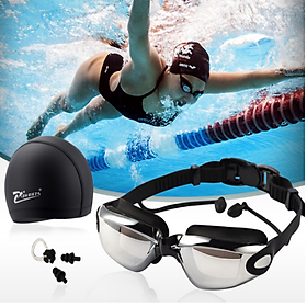 ✨Bộ kính bơi tráng gương cao cấp chống dính nước + mũ + bịt tai 206452