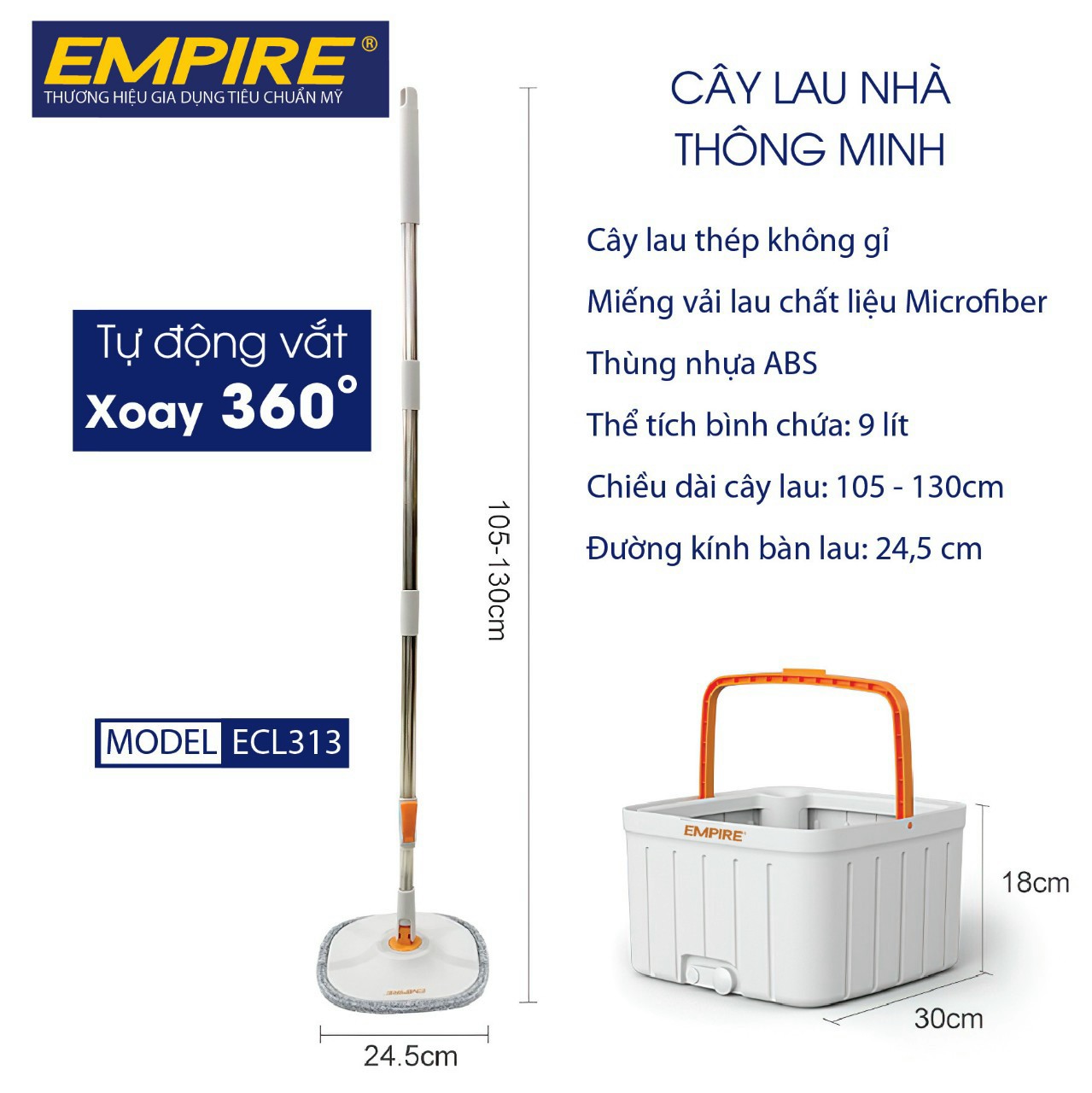 CÂY LAU NHÀ EMPIRE ECL311 Bộ Lau Nhà Tự Vắt Thông Minh với khả năng lau sạch sàn nhà một cách nhanh chóng và nhẹ nhàng, phù hợp với mọi loại bề mặt sàn như