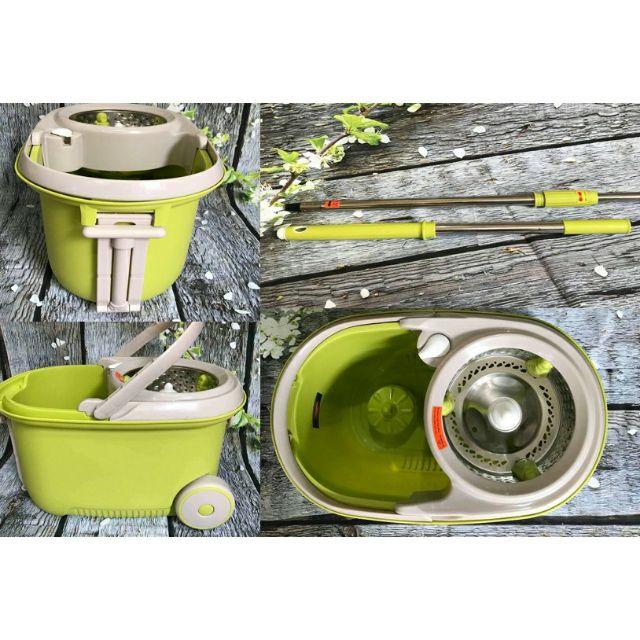 Bộ cây lau nhà xoay tay 360 độ MOP- L003 Màu sắc: Xanh lá cây Chất liệu : Nhựa, inox, sợi bông Kích thước: 49,5 x 31,5 x 30 (cm) -Lồng vắt bằng inox. Độ