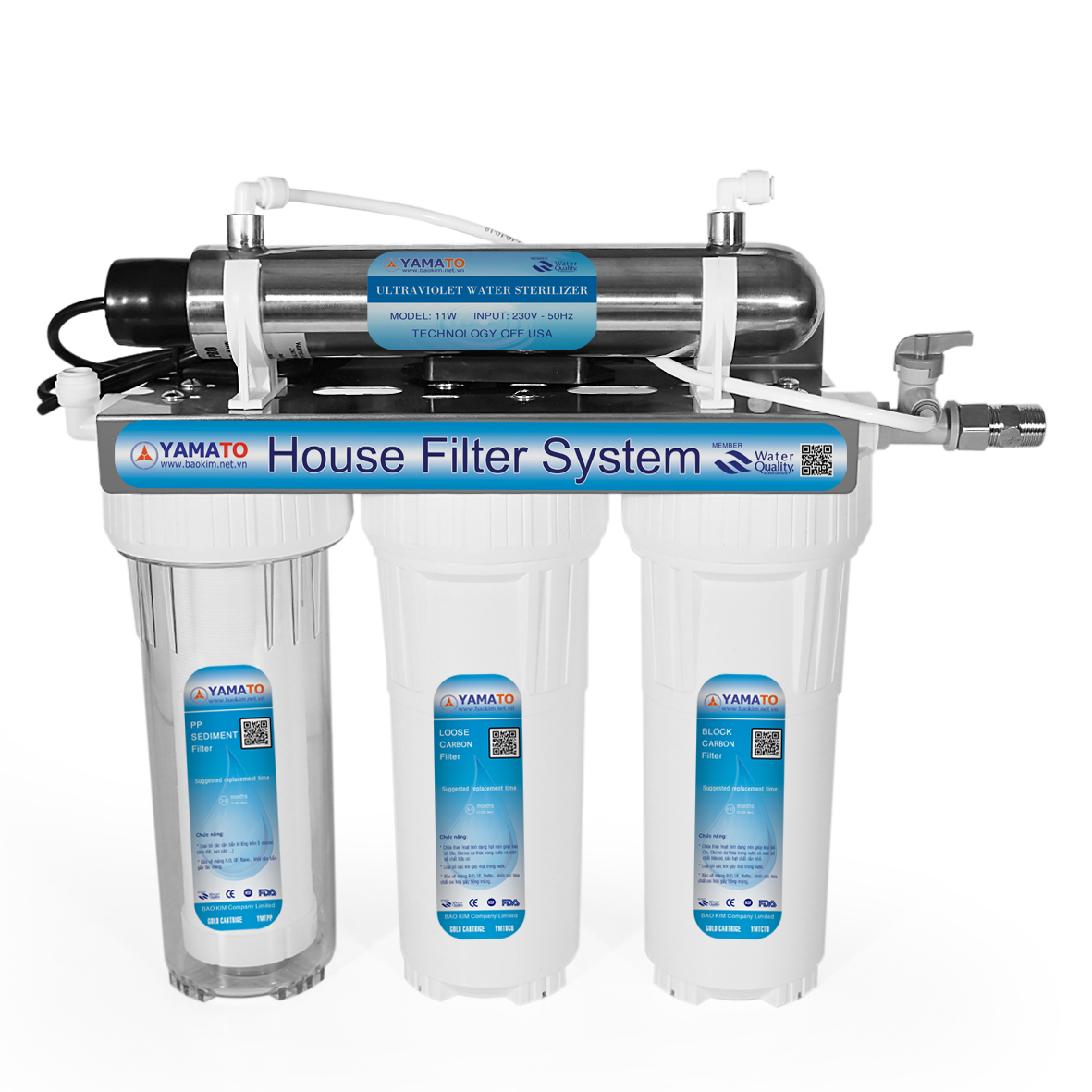 Bộ lọc nước sinh hoạt gia đình 3 cấp lọc và 1 đèn diệt khuẩn chuyên lọc nước máy, nước giếng có độ nhiễm phèn thấp