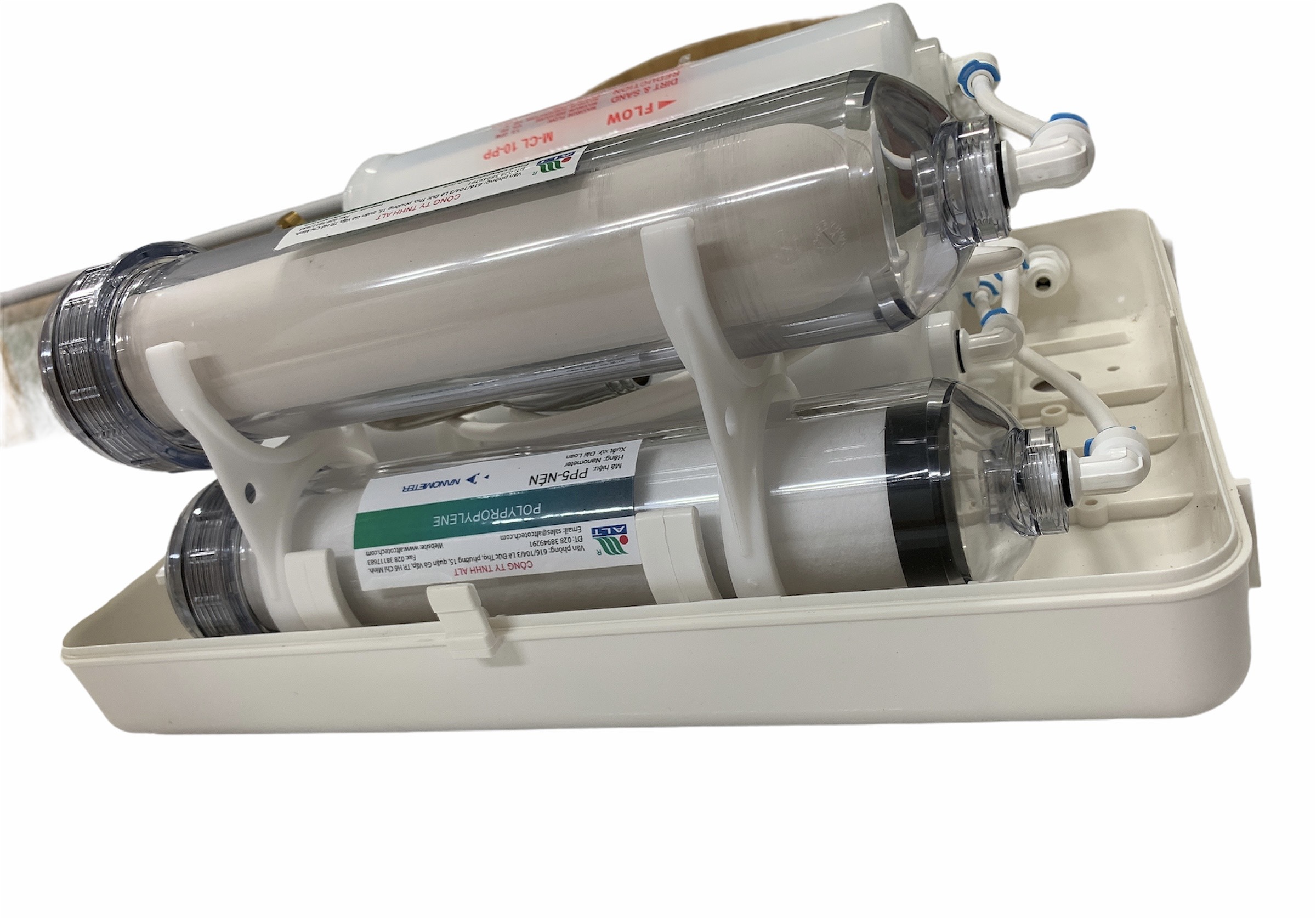 - Lõi lọc nến 5 micron: Tiền xử lý giúp loại bỏ các cặn bẩn, rỉ sét, cát và các tạp chất có kích thước lớn hơn 1 micron.