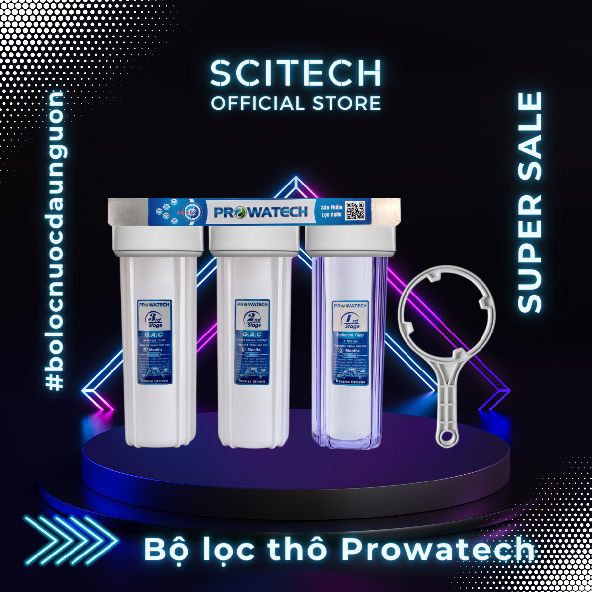 ✨Bộ lọc nước sinh hoạt, bộ ba lọc thô 10 inch Prowatech by Scitech (3 cấp lọc) - Hàng chính hãng