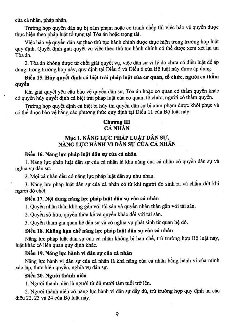 Mua tại TiktokBộ luật dân sự 2015 vừa được ban hành ngày 24/11/2015 với nhiều nội dung mới về xác lập, bảo vệ quyền dân sự; năng lực pháp luật dân sự của cá nhân, pháp nhân;