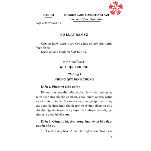 Bộ Luật Dân Sự Nước Cộng Hòa Xã Hội Chủ Nghĩa Việt Nam Nội dung sách bao gồm các văn bản quy phạm pháp luật quy định về địa vị pháp lý, chuẩn mực pháp