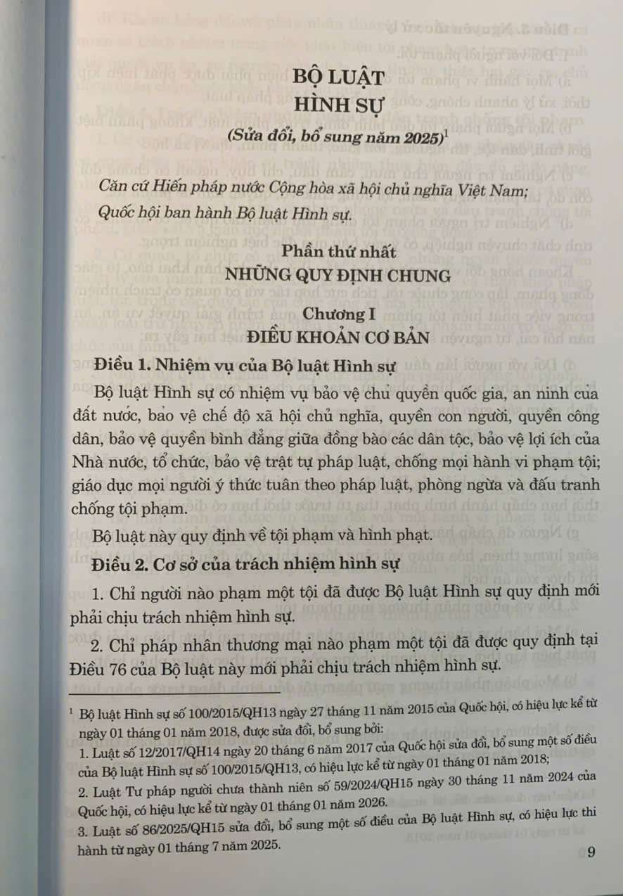 Sách - Bộ luật Hình sự, Bộ luật Tố tụng Hình sự (sửa đổi, bổ sung năm 2025) Tác giả: Quốc Hội Nhà xuất bản: Lao Động Ngày xuất bản: 9.2025 Đơn vị phát hành: