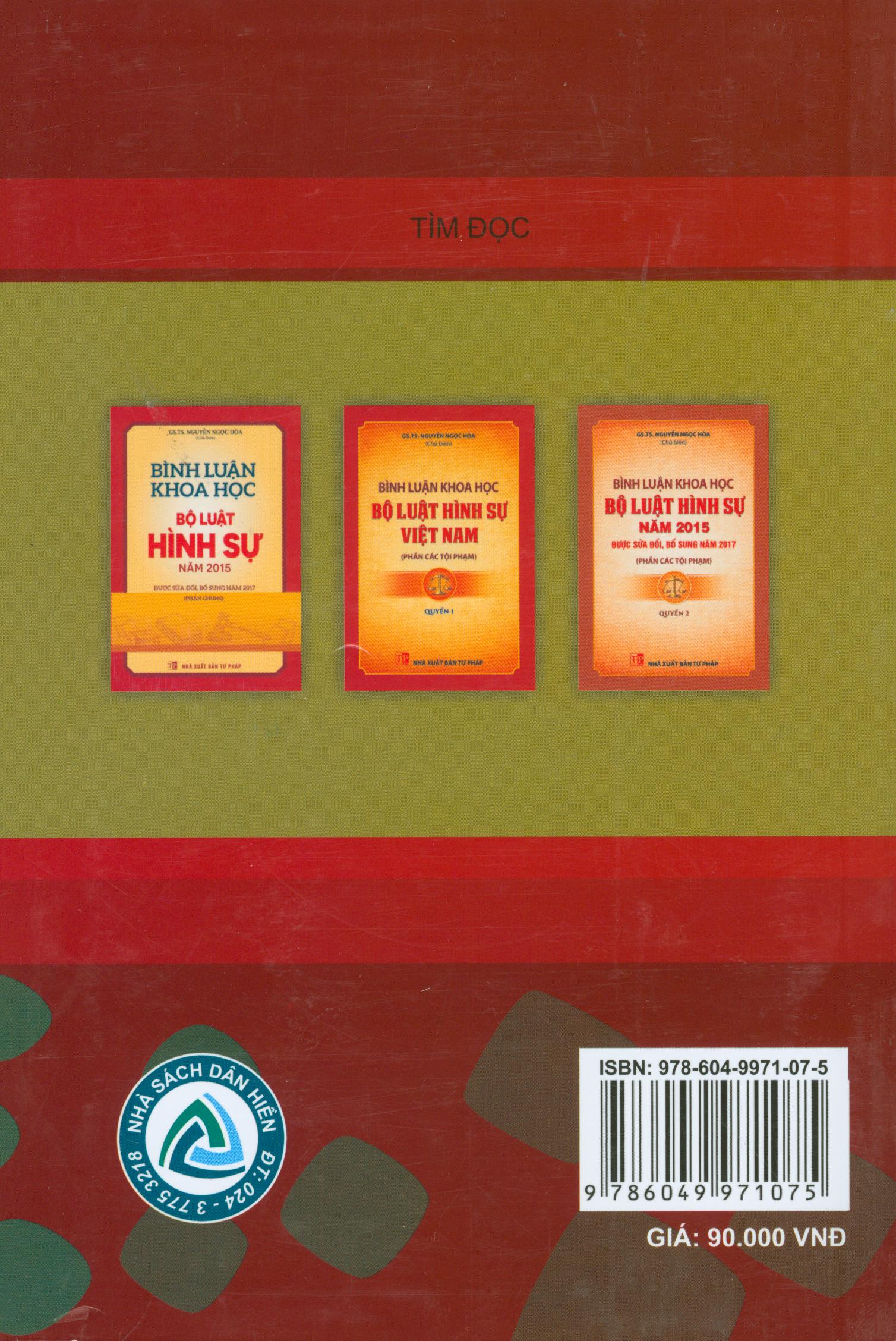 Bình luận khoa học Bộ luật hình sự năm 2015 được sửa đổi, bổ sung năm 2017 (Phần các tội phạm) - Quyển 1 Tác giả: GS.TS Nguyễn Ngọc Hoà (Chủ biên) NXB Tư pháp
