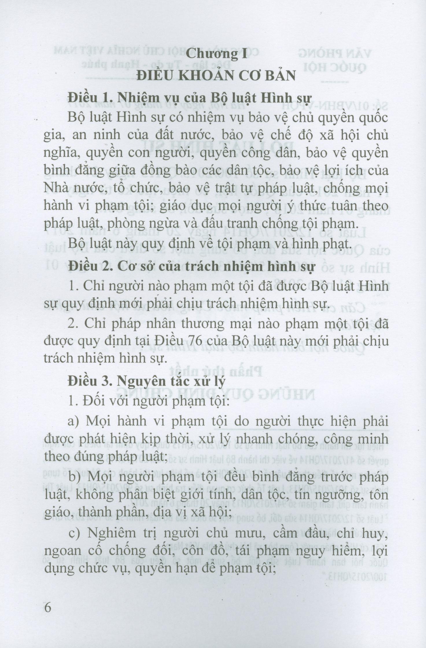 - Chỉ pháp nhân thương mại nào phạm một tội đã được quy định tại Điều 76 của Bộ luật này mới phải chịu trách nhiệm hình sự. Điều 3. Nguyên tắc xử lý