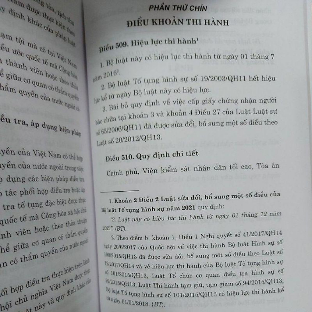 Phiên bản Bộ luật tố tụng hình sự năm 2015 (đính kèm 4 trang nội dung chỉnh sửa năm 2021), nên bạn đọc cân nhắc khi mua tham khảo Bộ luật tố tụng