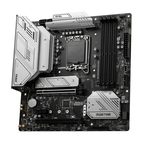 Nhà sản xuất MSI Model MAG-B760M-MORTAR-WIFI-DDR4 CPU hỗ trợ - Intel Core 12th/ 13th - Socket LGA1700 Chipset B760 Hỗ trợ Ram 4 x DDR4 5333(OC)/ 5200(OC)/ 5066(OC)/ 5000(OC)/ 4800(OC)/ 4600(OC)/ 4400(OC)/ 4266(OC)/ 4200(OC)/ 4000(OC)/ 3800(OC)/ 3733(OC)/ 3600(OC)/ 3466(OC)/ 3400(OC)/ 3333(OC)/ 3200(JEDEC)/ 2933(JEDEC)/ 2666(JEDEC)/ 2400(JEDEC)/ 2133(JEDEC) (Maximum 128GB) Khe cắm mở rộng - 2 x PCIe x16 - 1 x PCIe x1 Hỗ trợ ổ cứng 1 x M2 2280/2260/2242 PCIe 4.0 x4/ SATA 1 x M2 2242/ 2260/ 2280 PCIe 4.0 x4 4 x SATA III 6Gbps *Support Raid 0, 1, 5, 10 cho SATA LAN/ Wireless - LAN: Realtek RTL8125BG 2.5Gbps - WIFI 6E + Bluetooth 5.3 Audio Realtek ALC897 Cổng kết nối bên trong -Fan and Cooling 1 x CPU Fan 1 x Pump Fan connector 2 x system Fan