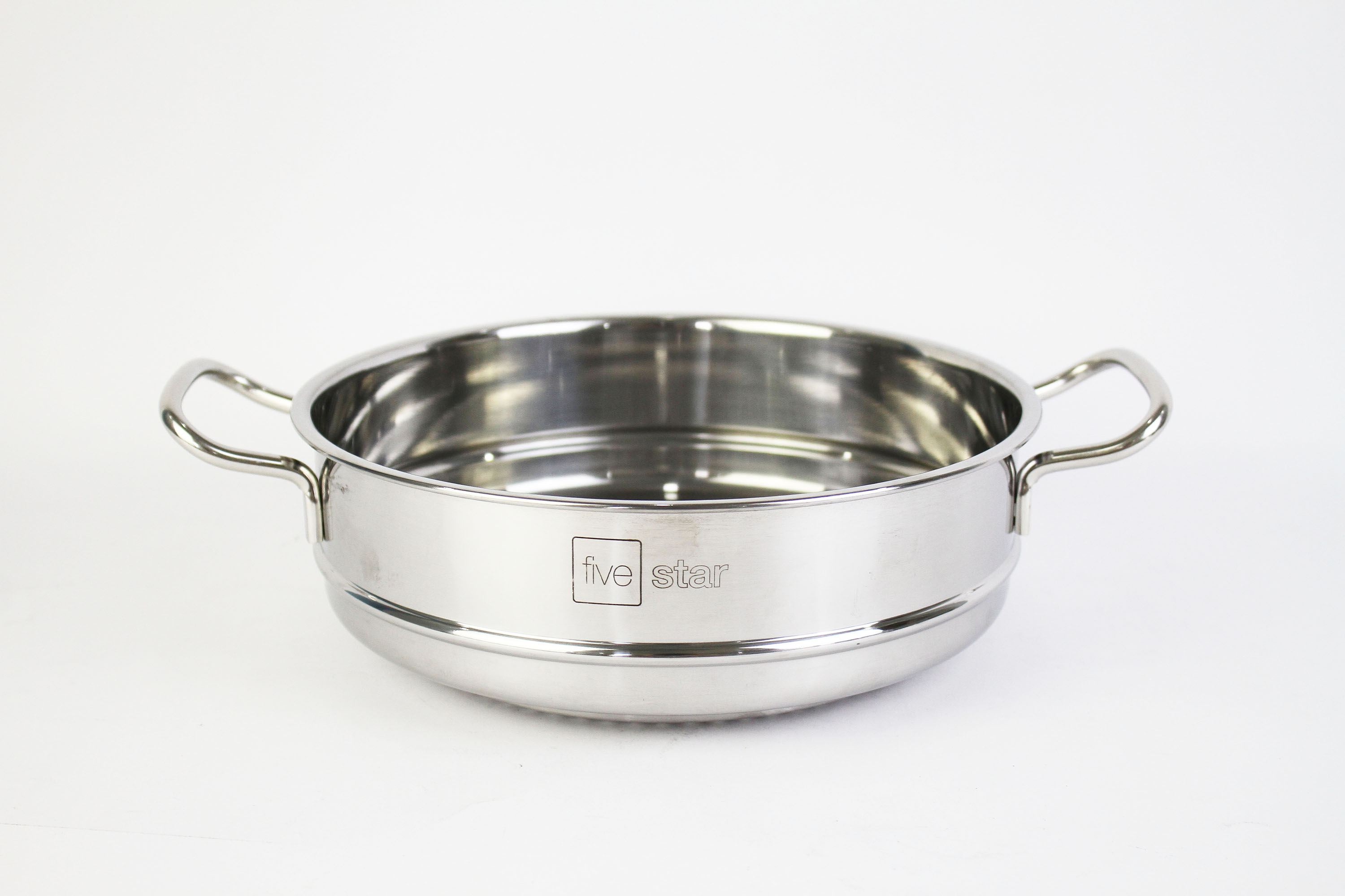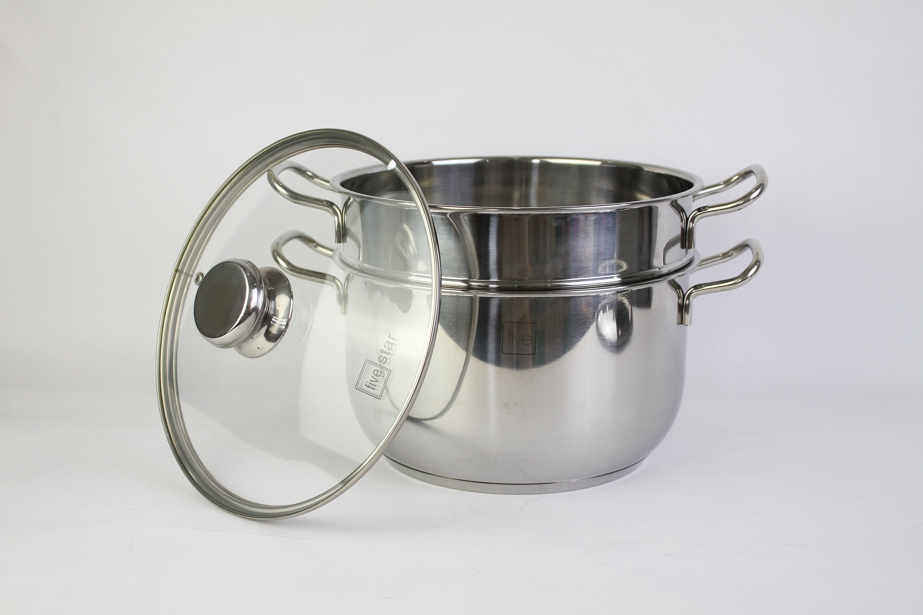 Bộ nồi chảo xửng hấp 3 Đáy Inox 430 cao cấp Fivestar Standard bếp từ nắp kính , tặng 1 vá canh Bộ nồi inox có 9 món gồm : +Quánh có đường kính