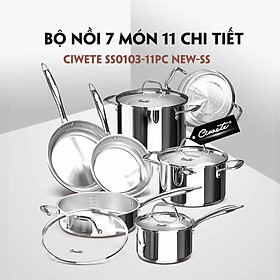 Thương hiệu: Ciwete Xuất xứ: Mỹ Kiểu dáng: Bộ nồi và chảo inox 7 món có xửng hấp Màu sắc: Grey Chất liệu: Inox 304 Kích thước: Chảo nhỏ: (Đường kính x Chiều cao) 20 x