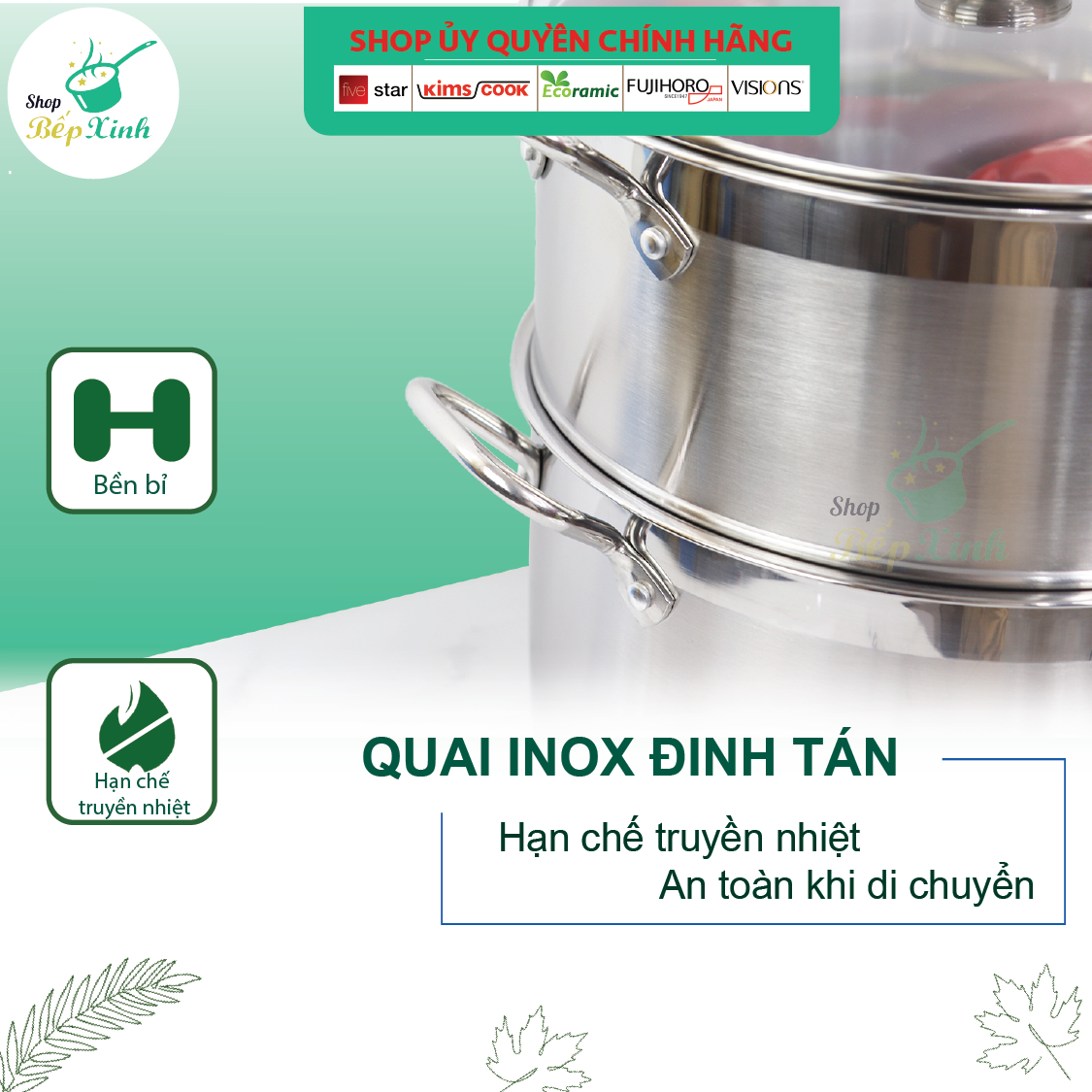 BỘ NỒI XỬNG HẤP 28CM, DÙNG ĐƯỢC BẾP TỪ Bộ Nồi Xửng Hấp có nắp bằng kính cường lực dày, bên ngoài viền inox tăng độ bền và chống vỡ khá tốt. Tay cầm thiết kế inox,