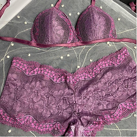 ✨Bộ Nội Y Thiết Kế Ren Cao Cấp Hồng Tím Có Mút Quần Đùi