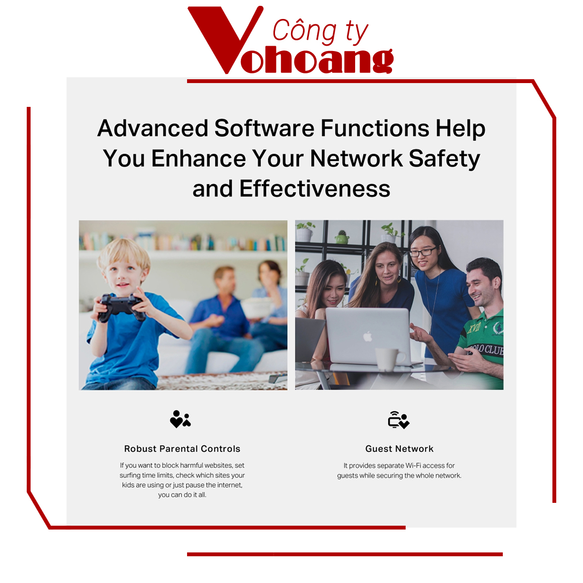 Router 3200Mbps Wi-Fi 6 Dual-band Gigabit Mesh: - Băng thông lớn; CPU lõi kép 4 luồng, hỗ trợ NAT - Truy cập đồng thời 48 người dùng (đề xuất) truy cập Wifi hai dải băng