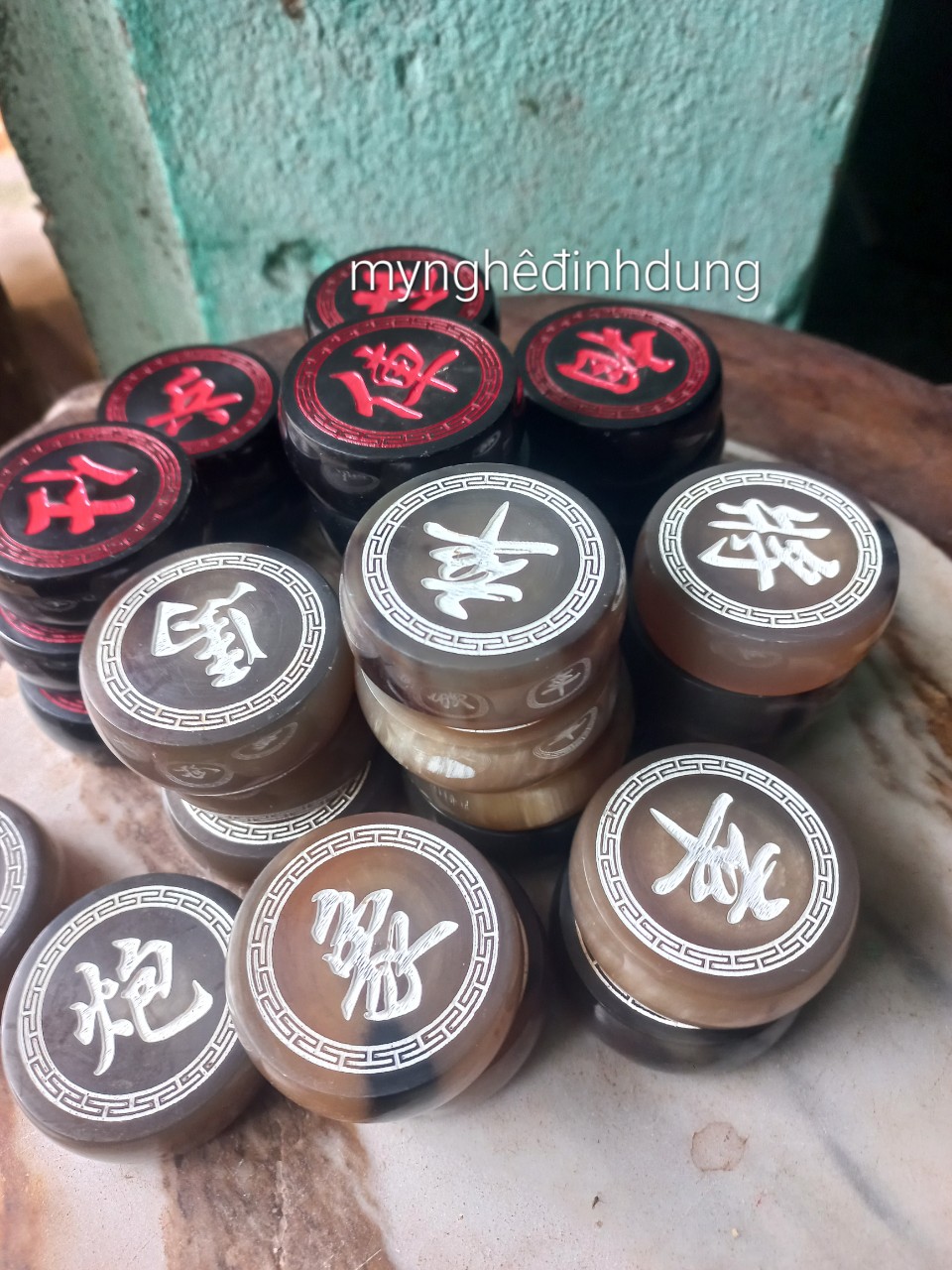 Mua tại TiktokBộ quân cờ tướng được làm bằng chất liệu sừng trắng, sừng đen tự nhiên 100% Kt mặt sừng tròn 3.7×1.2cm _ Quân cờ được chạm khắc tỉ mỉ ,tinh xảo kỳ công Từ những người thợ giàu kinh nghiệm cũng như tay nghề cao trong làng nghề truyền thống.