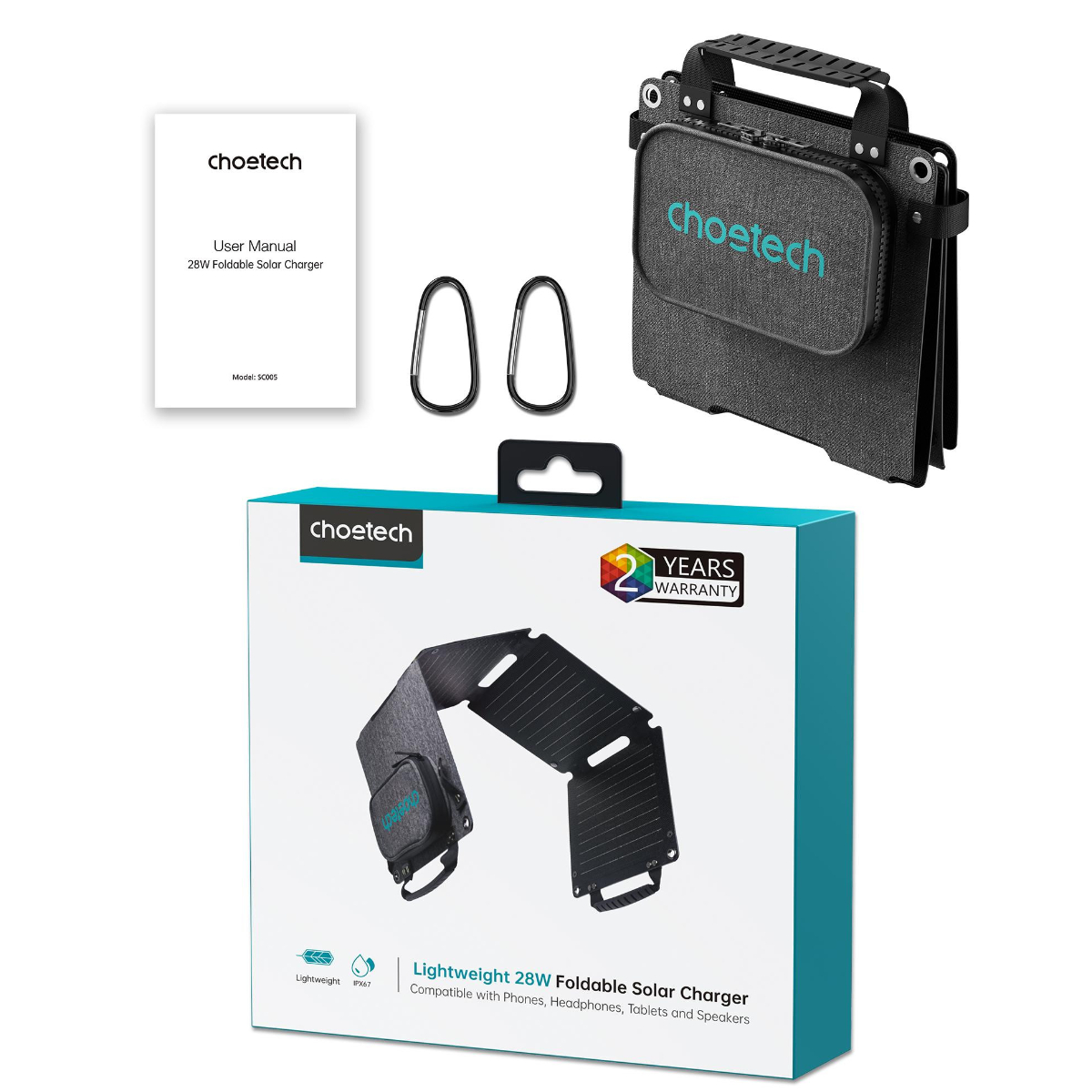Mua tại TiktokGiới thiệu Bộ sạc năng lượng mặt trời di động Choetech SC005-V5 công suất 28w có thể gấp gọn (Hàng chính hãng)