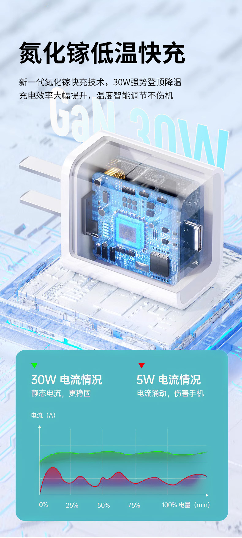 Hợp chất GaN dẫn điện tốt hơn và cắt giảm được nhiệt năng, dòng điện sẽ hướng về thiết bị sạc nhanh hơn. Điều này vừa tiết kiệm điện vừa tiết kiệm thời gian sạc.